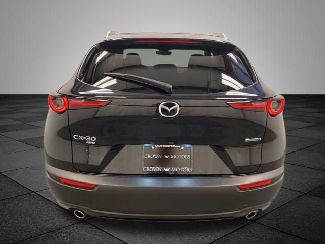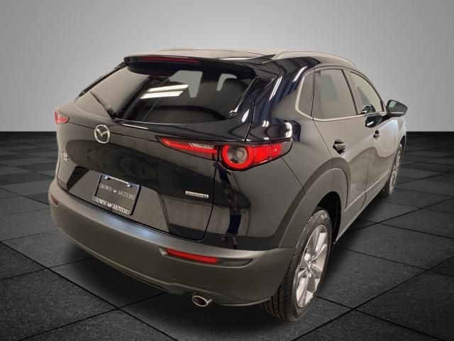 Jet Black Mica 2023 Mazda CX-30 2.5 S Premium Package AWD 6-Speed Automatic SKYACTIV® 2.5L 4-Cylinder DOHC 16V AWD, 4-Wheel Disc Brakes, 4.095 Axle Ratio, 8 Speakers, ABS brakes, Air Conditioning, Alloy wheels, AppLink/Apple CarPlay and Android Auto, Auto High-beam Headlights, Automatic temperature control, Bose Audio Credit, Brake assist, Bumpers: body-color, Cargo Cover, Compass, Delay-off headlights, Driver door bin, Driver vanity mirror, Dual front impact airbags, Dual front side impact airbags, Electronic Stability Control, Emergency communication system: Mazda Connected Services (3-year complimentary trial included), Exterior Parking Camera Rear, Front anti-roll bar, Front Bucket Seats, Front Center Armrest, Front dual zone A/C, Front reading lights, Front wheel independent suspension, Fully automatic headlights, Heads-Up Display, Heated Front Bucket Seats, Heated front seats, Illuminated entry, Knee airbag, Leather Seat Trim, Leather Shift Knob, Leather steering wheel, Low tire pressure warning, MAZDA CONNECT Infotainment System, Memory seat, Navigation system: MAZDA CONNECT, Occupant sensing airbag, Outside temperature display, Overhead airbag, Overhead console, Panic alarm, Passenger door bin, Passenger vanity mirror, Power door mirrors, Power driver seat, Power Liftgate, Power moonroof, Power steering, Power windows, Radio data system, Radio: AM/FM/HD Audio System w/Mazda Navigation, Rain sensing wipers, Rear seat center armrest, Rear side impact airbag, Rear window defroster, Rear window wiper, Remote keyless entry, Speed control, Speed-sensing steering, Split folding rear seat, Spoiler, Steering wheel mounted audio controls, Tachometer, Telescoping steering wheel, Tilt steering wheel, Traction control, Trip computer, Turn signal indicator mirrors, Variably intermittent wipers, Wheel Locks, Wheels: 18" x 7J Aluminum Alloy, AWD.