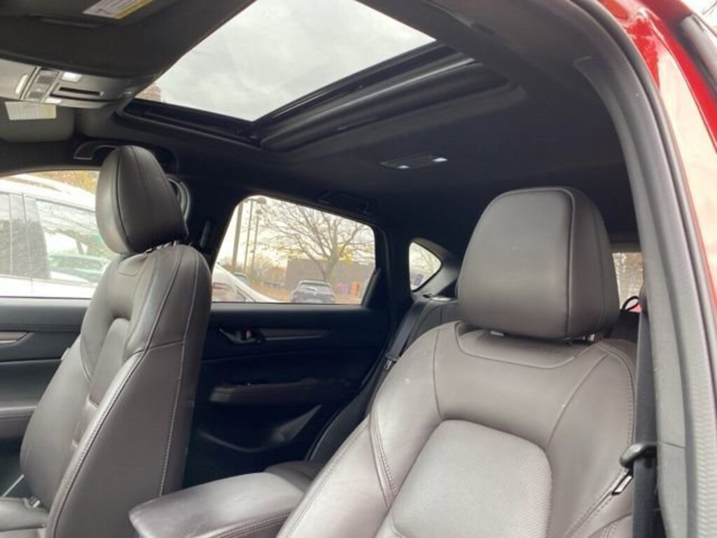 Soul Red Crystal Metallic 2023 Mazda CX-5 2.5 Turbo Signature AWD 6-Speed Automatic 2.5L I4 10 Speakers, 4-Wheel Disc Brakes, 4.411 Axle Ratio, ABS brakes, Air Conditioning, Alloy wheels, AM/FM radio: SiriusXM, AppLink/Apple CarPlay and Android Auto, Auto High-beam Headlights, Auto-dimming Rear-View mirror, Automatic temperature control, Brake assist, Bumpers: body-color, Cargo Net, Delay-off headlights, Driver door bin, Driver vanity mirror, Dual front impact airbags, Dual front side impact airbags, E911 Automatic Emergency Notification, Electronic Stability Control, Emergency communication system: MAZDA CONNECT, First Aid Kit, Four wheel independent suspension, Front anti-roll bar, Front Bucket Seats, Front Center Armrest w/Storage, Front dual zone A/C, Front reading lights, Fully automatic headlights, Garage door transmitter: HomeLink, Heads-Up Display, Heated door mirrors, Heated front seats, Heated rear seats, Heated steering wheel, Heated/Ventilated Front Bucket Seats, Illuminated entry, Infotainment System Voice Command, Leather Shift Knob, Low tire pressure warning, Memory seat, Multifunction Commander Control, Occupant sensing airbag, Outside temperature display, Overhead airbag, Overhead console, Pandora, Panic alarm, Passenger door bin, Passenger vanity mirror, Power door mirrors, Power driver seat, Power Liftgate, Power moonroof, Power passenger seat, Power steering, Power windows, Radio Broadcast Data System Program Information, Radio data system, Radio: AM/FM/HD Audio System, Rain sensing wipers, Rear anti-roll bar, Rear Bumper Guard, Rear reading lights, Rear seat center armrest, Rear window defroster, Rear window wiper, Remote keyless entry, Roof Rack Side Rails, SMS Text Msg Audio Delivery & Reply, Soul Red Crystal Metallic Paint, Speed control, Speed-sensing steering, Split folding rear seat, Spoiler, Steering wheel mounted audio controls, Tachometer, Telescoping steering wheel, Tilt steering wheel, Traction control, Trip computer, Turn signal indicator mirrors, Variably intermittent wipers, Ventilated front seats, Wheel Locks, Wheels: 19" x 7J Aluminum Alloy.