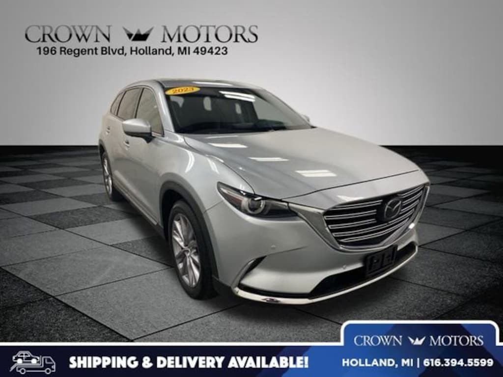 CARFAX One-Owner. Clean CARFAX. Certified. Sonic Silver Metallic 2023 Mazda CX-9 Grand Touring AWD 6-Speed Automatic 2.5L 4-Cylinder **ONE OWNER**, ** LOW MILES**, **MAZDA CERTIFIED**, **ACCIDENT FREE**, Mazda Certified Pre-Owned Certified, AWD, 12 Speakers, 3rd row seats: bench, 4-Wheel Disc Brakes, 4.411 Axle Ratio, ABS brakes, Air Conditioning, All-Weather Floor Mats (All 3 Rows - Bench Seats), Alloy wheels, AM/FM radio: SiriusXM, AppLink/Apple CarPlay and Android Auto, Auto High-beam Headlights, Auto-dimming Rear-View mirror, Automatic temperature control, Brake assist, Bumpers: body-color, Compass, Delay-off headlights, Driver door bin, Driver vanity mirror, Dual front impact airbags, Dual front side impact airbags, E911 Automatic Emergency Notification, Electronic Stability Control, Emergency communication system: MAZDA CONNECT, Four wheel independent suspension, Front anti-roll bar, Front Bucket Seats, Front Center Armrest, Front dual zone A/C, Front fog lights, Front reading lights, Fully automatic headlights, Garage door transmitter: HomeLink, Hands-Free Liftgate Delete, Heads-Up Display, Heated door mirrors, Heated front seats, Heated rear seats, Heated steering wheel, Heated/Ventilated Front Bucket Seats, Illuminated entry, Infotainment System Voice Command, Leather Seat Trim, Leather Shift Knob, Leather steering wheel, Low tire pressure warning, Mazda Connected Services, Mazda Navigation System, Memory seat, Navigation System, Occupant sensing airbag, Outside temperature display, Overhead airbag, Overhead console, Pandora Internet Radio Integration, Panic alarm, Passenger door bin, Passenger vanity mirror, Power door mirrors, Power driver seat, Power Liftgate, Power moonroof, Power passenger seat, Power steering, Power windows, Radio Broadcast Data System Program Information, Radio data system, Radio: AM/FM w/Bose Premium Audio System, Rain sensing wipers, Rear air conditioning, Rear anti-roll bar, Rear reading lights, Rear seat center armrest, Rear window defroster, Rear window wiper, Remote keyless entry, SiriusXM Satellite Radio, SMS Text Msg Audio Delivery & Reply, Speed control, Speed-sensing steering, Split folding rear seat, Spoiler, Steering wheel mounted audio controls, Tachometer, Telescoping steering wheel, Tilt steering wheel, Traction control, Trip computer, Turn signal indicator mirrors, Variably intermittent wipers, Ventilated front seats, Wheels: 20" x 8.5J Aluminum Alloy, AWD.