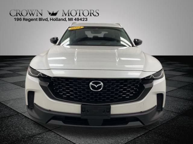 CARFAX One-Owner. Clean CARFAX. Wind Chill Pearl 2024 Mazda CX-50 2.5 S Premium Plus Package AWD 6-Speed Automatic SKYACTIV® 2.5L 4-Cylinder DOHC 16V **ONE OWNER**, **ACCIDENT FREE**, **ALL WHEEL DRIVE**, **Dual Zone Automatic Climate Control**, **HEATED SEATS**, **LEATHER SEATS**, **PANORAMIC MOON ROOF**, **REAR VIEW CAMERA**, **Remaining Factory Warranty**, AWD, 12 Speakers, 20" x 8J Aluminum Alloy Wheels, 4-Wheel Disc Brakes, 4.367 Axle Ratio, ABS brakes, Air Conditioning, Alloy wheels, AM/FM radio: SiriusXM, AppLink/Apple CarPlay and Android Auto, Auto High-beam Headlights, Auto-dimming Rear-View mirror, Automatic temperature control, Brake assist, Bumpers: body-color, Cargo Blocks, Cargo Package, Carpet Cargo Mat, Delay-off headlights, Driver door bin, Driver vanity mirror, Dual front impact airbags, Dual front side impact airbags, Electronic Stability Control, Emergency communication system: MAZDA CONNECT, Exterior Parking Camera Rear, Front anti-roll bar, Front Bucket Seats, Front Center Armrest, Front dual zone A/C, Front reading lights, Front wheel independent suspension, Fully automatic headlights, Garage door transmitter: HomeLink, Heads-Up Display, Heated & Ventilated Front Bucket Seats, Heated door mirrors, Heated front seats, Illuminated entry, Knee airbag, Leather Seat Trim, Leather Shift Knob, Leather steering wheel, Low tire pressure warning, Memory seat, Occupant sensing airbag, Outside temperature display, Overhead airbag, Overhead console, Panic alarm, Passenger door bin, Passenger vanity mirror, Power door mirrors, Power driver seat, Power Liftgate, Power moonroof, Power passenger seat, Power steering, Power windows, Radio data system, Radio: AM/FM/HD Audio System, Rain sensing wipers, Rear seat center armrest, Rear window defroster, Rear window wiper, Remote keyless entry, Retractable Cargo Cover, Roof rack: xxxxxx, Speed control, Speed-sensing steering, Split folding rear seat, Spoiler, Steering wheel mounted audio controls, Tachometer, Telescoping steering wheel, Tilt steering wheel, Traction control, Trip computer, Turn signal indicator mirrors, Variably intermittent wipers, Ventilated front seats, Wind Chill Pearl Paint Charge, **APPLE CAR PLAY/ANDROID AUTO CAPABLE**, **FREE CARFAX AT CROWNMOTORS.COM**, AWD.