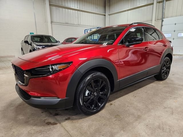 CARFAX One-Owner. Clean CARFAX. Certified. Soul Red Crystal Metallic 2025 Mazda CX-30 2.5 Turbo Premium Plus Package w/Premium Plus Package AWD 6-Speed Automatic 2.5L I4 **ONE OWNER**, ** LOW MILES**, **MAZDA CERTIFIED**, **ACCIDENT FREE**, Mazda Certified Pre-Owned Certified, AWD, 12 Speakers, 4-Wheel Disc Brakes, ABS brakes, Air Conditioning, Alloy wheels, AM/FM radio: SiriusXM, AppLink/Apple CarPlay and Android Auto, Auto High-beam Headlights, Auto-dimming door mirrors, Auto-dimming Rear-View mirror, Automatic temperature control, Black Lug Nuts & Black Wheel Locks, Brake assist, Bumpers: body-color, Compass, Delay-off headlights, Driver door bin, Driver vanity mirror, Dual front impact airbags, Dual front side impact airbags, Electronic Stability Control, Emergency communication system: Mazda Connected Services (3-year trial subscription included), Front anti-roll bar, Front Bucket Seats, Front Center Armrest, Front dual zone A/C, Front reading lights, Front wheel independent suspension, Fully automatic headlights, Garage door transmitter: HomeLink, Heads-Up Display, Heated door mirrors, Heated Front Bucket Seats, Heated front seats, Heated steering wheel, Illuminated entry, Knee airbag, Leather Seat Trim, Leather Shift Knob, Leather steering wheel, Low tire pressure warning, MAZDA CONNECT Infotainment System, Memory seat, Navigation system: MAZDA CONNECT, Occupant sensing airbag, Outside temperature display, Overhead airbag, Overhead console, Panic alarm, Passenger door bin, Passenger vanity mirror, Power door mirrors, Power driver seat, Power Liftgate, Power moonroof, Power steering, Power windows, Radio data system, Radio: AM/FM/HD Audio w/Mazda Online Navigation, Rain sensing wipers, Rear seat center armrest, Rear side impact airbag, Rear window defroster, Rear window wiper, Remote keyless entry, Soul Red Crystal Metallic Paint Charge, Speed control, Speed-sensing steering, Split folding rear seat, Spoiler, Steering wheel mounted audio controls, Tachometer, Telescoping steering wheel, Tilt steering wheel, Traction control, Trip computer, Turn signal indicator mirrors, Variably intermittent wipers, Wheels: 18" x 7J Aluminum Alloy, AWD.