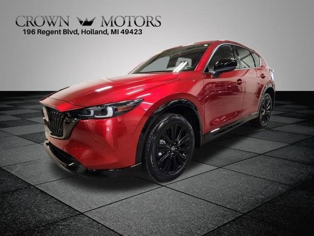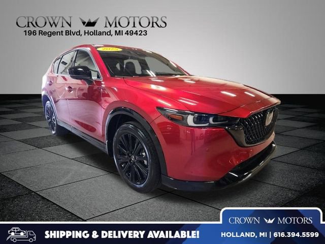 Clean CARFAX. Certified. Soul Red Crystal Metallic 2025 Mazda CX-5 2.5 Turbo Premium AWD 6-Speed Automatic 2.5L I4 **ONE OWNER**, ** LOW MILES**, **ACCIDENT FREE**, Mazda Certified Pre-Owned Certified, 10 Speakers, 4-Wheel Disc Brakes, ABS brakes, Air Conditioning, All-Weather Floor Mats, Alloy wheels, AM/FM radio: SiriusXM, AppLink/Apple CarPlay and Android Auto, Auto High-beam Headlights, Auto-dimming Rear-View mirror, Automatic temperature control, Brake assist, Bumpers: body-color, Cargo Mat, Cargo Net, Delay-off headlights, Driver door bin, Driver vanity mirror, Dual front impact airbags, Dual front side impact airbags, E911 Automatic Emergency Notification, Electronic Stability Control, Emergency communication system: MAZDA CONNECT, Four wheel independent suspension, Front & Rear Splash Guards, Front anti-roll bar, Front Bucket Seats, Front Center Armrest w/Storage, Front dual zone A/C, Front reading lights, Fully automatic headlights, Garage door transmitter: HomeLink, Heads-Up Display, Heated door mirrors, Heated front seats, Heated rear seats, Heated steering wheel, Heated/Ventilated Front Bucket Seats, Illuminated entry, Infotainment System Voice Command, Leather Seat Trim, Leather Shift Knob, Leather steering wheel, Low tire pressure warning, Memory seat, Multifunction Commander Control, Occupant sensing airbag, Outside temperature display, Overhead airbag, Overhead console, Pandora, Panic alarm, Passenger door bin, Passenger vanity mirror, Power door mirrors, Power driver seat, Power Liftgate, Power moonroof, Power passenger seat, Power steering, Power windows, Radio Broadcast Data System Program Information, Radio data system, Radio: AM/FM/HD Audio System, Rain sensing wipers, Rear anti-roll bar, Rear Bumper Guard, Rear reading lights, Rear seat center armrest, Rear window defroster, Rear window wiper, Remote keyless entry, SMS Text Msg Audio Delivery & Reply, Soul Red Crystal Metallic Paint, Speed control, Speed-sensing steering, Split folding rear seat, Spoiler, Steering wheel mounted audio controls, Tachometer, Telescoping steering wheel, Tilt steering wheel, Traction control, Trip computer, Turn signal indicator mirrors, Variably intermittent wipers, Ventilated front seats, Wheels: 19" x 7J Aluminum Alloy.