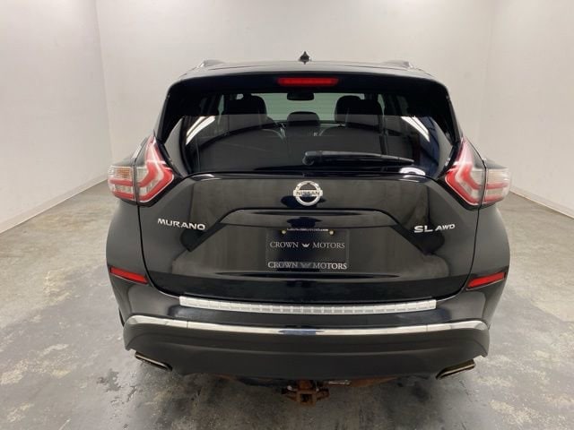 Clean CARFAX. Magnetic Black 2015 Nissan Murano SL AWD CVT with Xtronic 3.5L V6 DOHC **ONE OWNER**, **ACCIDENT FREE**, **LOCAL TRADE IN**, CVT with Xtronic, AWD, 11 Speakers, 4-Wheel Disc Brakes, 4.677 Axle Ratio, ABS brakes, Activation Disclaimer, Air Conditioning, Alloy wheels, AM/FM radio, Anti-whiplash front head restraints, Auto-dimming Rear-View mirror, Automatic temperature control, Brake assist, Bumpers: body-color, Cargo Package (DISC), CD player, Compass, Delay-off headlights, Driver door bin, Driver vanity mirror, Dual front impact airbags, Dual front side impact airbags, Electronic Stability Control, Floor Mats & Cargo Area Protector, Four wheel independent suspension, Front anti-roll bar, Front Bucket Seats, Front Center Armrest w/Storage, Front dual zone A/C, Front fog lights, Front reading lights, Fully automatic headlights, Garage door transmitter: HomeLink, Heated door mirrors, Heated Front Bucket Seats, Heated front seats, Illuminated entry, Illuminated Kick Plates, Intelligent Cruise Control, Knee airbag, Leather Appointed Seat Trim, Leather Shift Knob, Low tire pressure warning, Memory seat, Navigation System, Occupant sensing airbag, Outside temperature display, Overhead airbag, Overhead console, Panic alarm, Passenger door bin, Passenger vanity mirror, Power door mirrors, Power driver seat, Power Liftgate, Power passenger seat, Power steering, Power windows, Predictive Forward Collision Warning (PFCW), Radio data system, Radio: AM/FM/CD Audio System w/Navigation, Rear anti-roll bar, Rear reading lights, Rear seat center armrest, Rear window defroster, Rear window wiper, Remote keyless entry, Roof rack: rails only, Security system, SL Technology Package, Speed control, Speed-sensing steering, Speed-Sensitive Wipers, Splash Guards, Split folding rear seat, Spoiler, Steering wheel mounted audio controls, Tachometer, Telescoping steering wheel, Tilt steering wheel, Traction control, Trip computer, Turn signal indicator mirrors, Variably intermittent wipers, Wheels: 18" Machined Aluminum-Alloy, CVT with Xtronic, AWD.