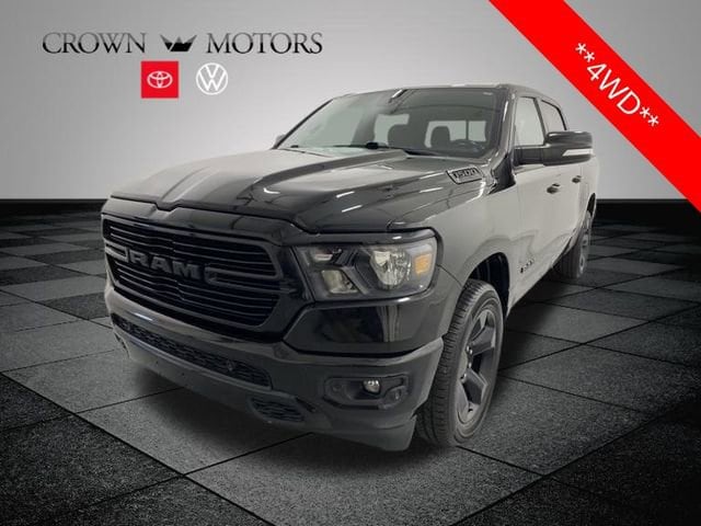 **LOW MILES**, **4WD**, **Tow Package**, **HEATED SEATS**, **HEATED STEERING WHEEL**, **REAR VIEW CAMERA**, **Dual Zone Automatic Climate Control**, **REMOTE START**, **Power Driver Seat**, **APPLE CAR PLAY/ANDROID AUTO CAPABLE**, 115V Auxiliary Power Outlet, 115V Auxiliary Rear Power Outlet, 2 USB Full Function/Charge Only Media Hub, 3 Rear Seat Head Restraints, 3.21 Rear Axle Ratio, 4 Way Front Headrests, 4-Wheel Disc Brakes, 400W Inverter, 48V Belt Starter Generator, 6 Speakers, 8.4" Touchscreen Display, ABS brakes, Air Conditioning, Air Conditioning ATC w/Dual Zone Control, Alloy wheels, AM/FM radio, Auto-Dimming Exterior Driver Mirror, Auto-Dimming Rear-View Mirror, Big Horn IP Badge, Big Horn Level 2 Equipment Group, Black Appearance Package, Black Exterior Truck Badging, Black Headlamp Bezels, Black Interior Accents, Body Color Door Handles, Body Color Front Bumper, Body Color Rear Bumper w/Step Pads, Brake assist, Bucket Seats, Bumpers: chrome, Center Console Parts Module, Class IV Receiver Hitch, Cloth Bench Seat, Cluster 7.0" TFT Color Display, Compass, Dampened Tailgate, Delay-off headlights, Deluxe Cloth Bucket Seats, Driver door bin, Dual Exhaust w/Black Tips, Dual front impact airbags, Dual front side impact airbags, Electronic Stability Control, Exterior Mirrors Courtesy Lamps, Exterior Mirrors w/Memory, Exterior Mirrors w/Supplemental Signals, Foam Bottle Insert (Door Trim Panel), Front anti-roll bar, Front Center Armrest w/Storage, Front fog lights, Front reading lights, Front Seat Back Map Pockets, Front wheel independent suspension, Full Length Floor Console, Fully automatic headlights, Glove Box Lamp, GPS Antenna Input, Grille B/Color Outline 1 Texture 2, Heated door mirrors, Heated Front Seats, Heated Steering Wheel, Illuminated entry, Integrated Center Stack Radio, Leather steering wheel, Low tire pressure warning, Manual Adjust 4-Way Front Passenger Seat, Occupant sensing airbag, Outside temperature display, Overhead airbag, Overhead console, Panic alarm, ParkSense Front/Rear Park Assist w/Stop, ParkView Rear Back-Up Camera, Passenger door bin, Passenger vanity mirror, Power 4-Way Driver Lumbar Adjust, Power 8-Way Driver Seat, Power Adjustable Pedals, Power door mirrors, Power Heated Fold Away Mirrors, Power Heated Fold-Away Mirrors, Power steering, Power windows, Power-Folding Mirrors, Quick Order Package 25Z Big Horn/Lone Star, Radio data system, Radio: Uconnect 3 w/5" Display, Radio: Uconnect 4 w/8.4" Display, Rear 60/40 Folding Seat, Rear anti-roll bar, Rear Dome w/On/Off Switch Lamp, Rear Power Sliding Window, Rear seat center armrest, Rear step bumper, Rear Wheelhouse Liners, Rear Window Defroster, Remote keyless entry, Remote Start System, Security Alarm, Single Disc Remote CD Player, SiriusXM Satellite Radio, Speed control, Split folding rear seat, Steering Wheel Mounted Audio Controls, Sun Visors w/Illuminated Vanity Mirrors, Tachometer, Telescoping steering wheel, Tilt steering wheel, Traction control, Trip computer, Universal Garage Door Opener, Variably intermittent wipers, Voltmeter, Wheels: 18" x 8", Wheels: 20" x 9" Cast Aluminum Black.