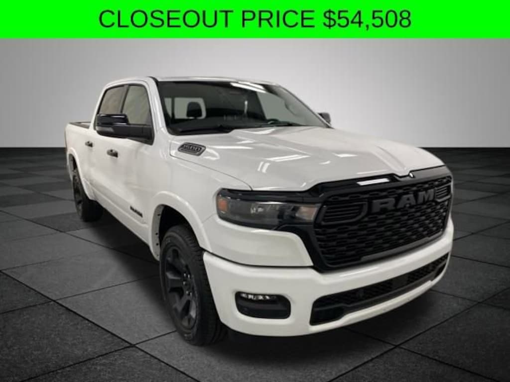 2026 Ram 1500 Big Horn/Lone Star Bright White Clearcoat 115V Auxiliary Power Outlet, 115V Auxiliary Rear Power Outlet, 12" Touchscreen Display, 2nd Row In Floor Storage Bins, 3 Rear Seat Head Restraints, 4 Way Front Headrests, 400W Inverter, 4G LTE Wi-Fi Hot Spot, 9 Amplified Speakers w/Subwoofer, Accent Color Door Handles, Accent Color Tailgate Handle, Air Conditioning ATC w/Dual Zone Control, Anti-Spin Differential Rear Axle, Apple CarPlay, Auto Power-Folding Mirrors, Auto-Dimming Exterior Driver Mirror, Auto-Dimming Rear-View Mirror, Big Horn Level 2 Equipment Group, Black Exterior Mirrors, Black Exterior Truck Badging, Black Headlamp Bezels, Black Interior Accents, Black Painted Exterior Mirrors Caps, Black Premium Power Mirrors, Black Tail Lamp Bezels, Body Color Fender Flares, Body Color Front Bumper, Body Color Rear Bumper w/Step Pads, Bucket Seats, Center Console Parts Module, Cluster 7.0" TFT Color Display, Configurable Drive Mode, Connected Travel & Traffic Services, Connectivity - US/Canada, Convex Wide-Angle Exterior Mirror Insert, Deluxe Cloth Bucket Seats, Disassociated Touchscreen Display, Dual Exhaust w/Black Tips, Exterior Mirrors Courtesy Lamps, Exterior Mirrors w/Heating Element, Exterior Mirrors w/Supplemental Signals, Front Seat Back Map Pockets, Full Length Floor Console, Global Telematics Box Module (TBM), Glove Box Lamp, Google Android Auto, GPS Antenna Input, GPS Navigation, Grille Black Surround Black Mesh, HD Radio, Heated Front Seats, Heated Steering Wheel, Integrated Center Stack Radio, Integrated Voice Command w/Bluetooth, Leather Wrapped Steering Wheel, LED Dome Lamp w/On/Off Switch, LED Footwell Lighting, Manual Adjust 4-Way Front Passenger Seat, Media Hub w/2 Charge Only USBs, Night Edition, Overhead LED Lamps, Power 2-Way Driver Lumbar Adjust, Power Adjust 8-Way Driver Seat, Power Adjustable Pedals, Premium Overhead Console, Quick Order Package 21Z Big Horn, Radio: Uconnect 5 Nav w/12.0" Display, RAM Grille Badge - Black, Rear 60/40 Folding Seat, Rear Center Armrest, Rear Power Sliding Window, Rear Window Defroster, Remote Tailgate Release, Security Alarm, SiriusXM Radio Service, SiriusXM w/360L, Steering Wheel Mounted Audio Controls, Sun Visors w/Illuminated Vanity Mirrors, USB Host Flip, Wheels: 20" x 9.0" Aluminum Painted Clad, Wheels: 20" x 9" Aluminum Chrome Clad (WRK), 4-Wheel Disc Brakes, 6 Speakers, ABS brakes, Accent Color Premium Power Mirrors, Air Conditioning, Alloy wheels, AM/FM radio, Apple CarPlay/Android Auto, Auto High-beam Headlights, Brake assist, Bumpers: chrome, Cloth Bucket Seats, Cluster 12" TFT Color Display, Compass, Delay-off headlights, Driver door bin, Dual front impact airbags, Dual front side impact airbags, Electronic Stability Control, Front anti-roll bar, Front Bucket Seats, Front Center Armrest w/Storage, Front fog lights, Front reading lights, Front wheel independent suspension, Fully automatic headlights, Heated door mirrors, Illuminated entry, Low tire pressure warning, Manual Adjust 4-Way Driver Seat, Manual Folding Exterior Mirrors, Manufactur