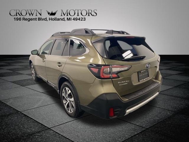 CARFAX One-Owner. Clean CARFAX. Green Metallic 2021 Subaru Outback Limited AWD CVT Lineartronic 2.5L 4-Cylinder DOHC 16V **ONE OWNER**, **ACCIDENT FREE**, **LOCAL TRADE IN**, AWD, 12 Speakers, 3.90 Axle Ratio, 4-Wheel Disc Brakes, ABS brakes, Air Conditioning, All-Weather Floor Liners, Alloy wheels, AM/FM radio: SiriusXM, Auto High-beam Headlights, Auto-Dimming Exterior Mirror w/Approach Light, Auto-dimming Rear-View mirror, Automatic temperature control, Brake assist, Bumpers: body-color, Compass, Dome Light LED Upgrade, Driver door bin, Driver vanity mirror, Dual front impact airbags, Dual front side impact airbags, Electronic Stability Control, Emergency communication system: STARLINK Safety and Security (Subscription Required), Exterior Parking Camera Rear, Four wheel independent suspension, Front anti-roll bar, Front Bucket Seats, Front Center Armrest w/Storage, Front dual zone A/C, Front fog lights, Front reading lights, Fully automatic headlights, Garage door transmitter: HomeLink, harman/kardon Surround Sound Speaker System, harman/kardon® Speakers, Heated door mirrors, Heated Front Bucket Seats, Heated front seats, Heated rear seats, Illuminated entry, Knee airbag, Leather steering wheel, Low tire pressure warning, Memory seat, Occupant sensing airbag, Outside temperature display, Overhead airbag, Overhead console, Panic alarm, Passenger door bin, Passenger vanity mirror, Perforated Leather-Trimmed Upholstery, Popular Package #2, Power door mirrors, Power driver seat, Power Liftgate, Power passenger seat, Power steering, Power windows, Radio: Subaru STARLINK 11.6" Multimedia Plus Sys, Rear anti-roll bar, Rear Bumper Cover, Rear Seat Back Protector, Rear seat center armrest, Rear window defroster, Rear window wiper, Remote keyless entry, Roof rack, Security system, Speed control, Speed-sensing steering, Splash Guards, Split folding rear seat, Spoiler, Standard Model, STARLINK/Apple CarPlay/Android Auto, Steering wheel mounted audio controls, Steering Wheel Paddle Shift Control Switches, Tachometer, Telescoping steering wheel, Tilt steering wheel, Traction control, Trip computer, Turn signal indicator mirrors, Variably intermittent wipers, Wheels: 18" x 7J Black Aluminum Alloy, AWD.