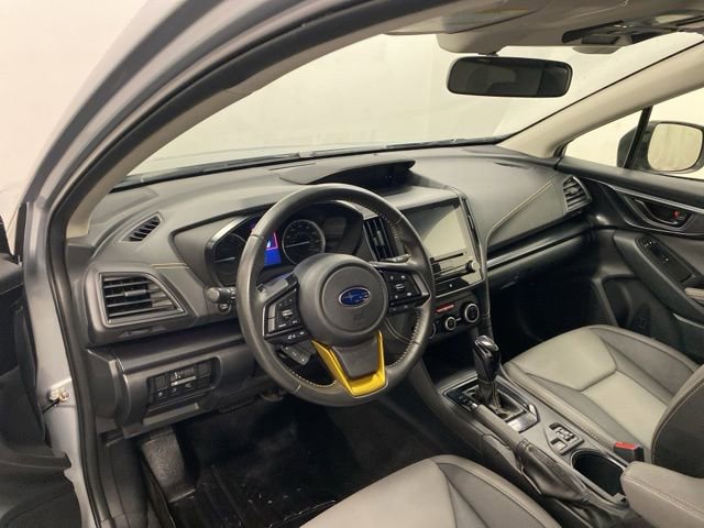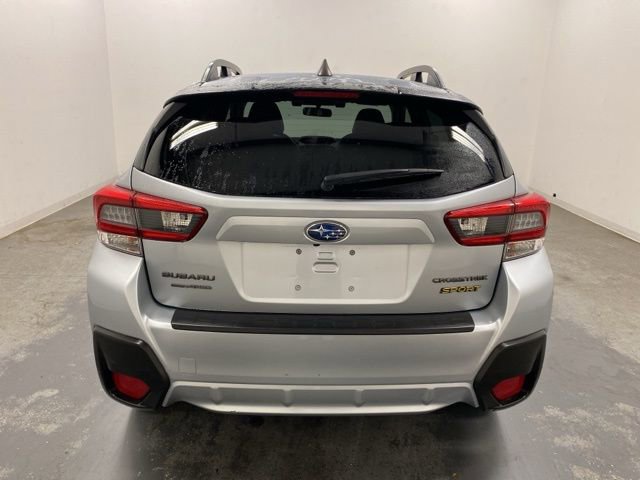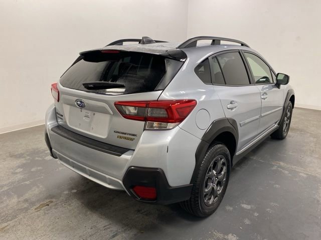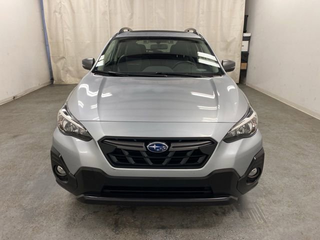 CARFAX One-Owner. Ice Silver Metallic 2022 Subaru Crosstrek Sport AWD Lineartronic CVT 2.5L 4-Cylinder DOHC 16V 3.70 Axle Ratio, 4-Wheel Disc Brakes, 6 Speakers, ABS brakes, Air Conditioning, Alloy wheels, AM/FM radio: SiriusXM, Anti-whiplash front head restraints, Automatic temperature control, Blind Spot Detection (BSD), Brake assist, Bumpers: body-color, CD player, Driver door bin, Driver vanity mirror, Dual front impact airbags, Dual front side impact airbags, Electronic Stability Control, Emergency communication system: STARLINK Safety and Security (Subscription Required), Exterior Parking Camera Rear, Four wheel independent suspension, Front anti-roll bar, Front Bucket Seats, Front Center Armrest, Front fog lights, Front reading lights, Fully automatic headlights, Heated door mirrors, Heated Front Bucket Seats, Heated front seats, Illuminated entry, Knee airbag, Leather Shift Knob, Low tire pressure warning, Moonroof Package, Occupant sensing airbag, Outside temperature display, Overhead airbag, Overhead console, Panic alarm, Passenger door bin, Passenger vanity mirror, Power door mirrors, Power Moonroof, Power steering, Power windows, Radio data system, Radio: Subaru STARLINK 6.5" Multimedia Plus System, Radio: Subaru STARLINK 8.0" Multimedia Plus System, Rear anti-roll bar, Rear window defroster, Rear window wiper, Remote keyless entry, Security system, Speed control, Speed-sensing steering, Split folding rear seat, Spoiler, STARLINK/Apple CarPlay/Android Auto, StarTex Upholstery, Steering wheel mounted audio controls, Subaru STARLINK Smartphone Integration, Tachometer, Telescoping steering wheel, Tilt steering wheel, Traction control, Trip computer, Turn signal indicator mirrors, Variably intermittent wipers, Wheels: 17" x 7.0J Alloy Dark Gray Finish.
