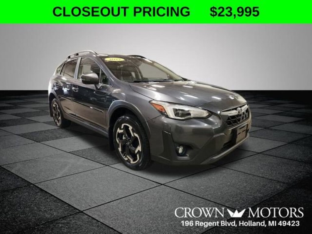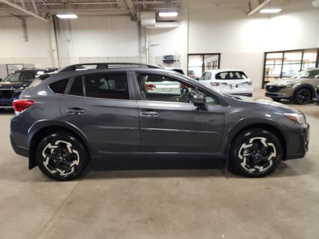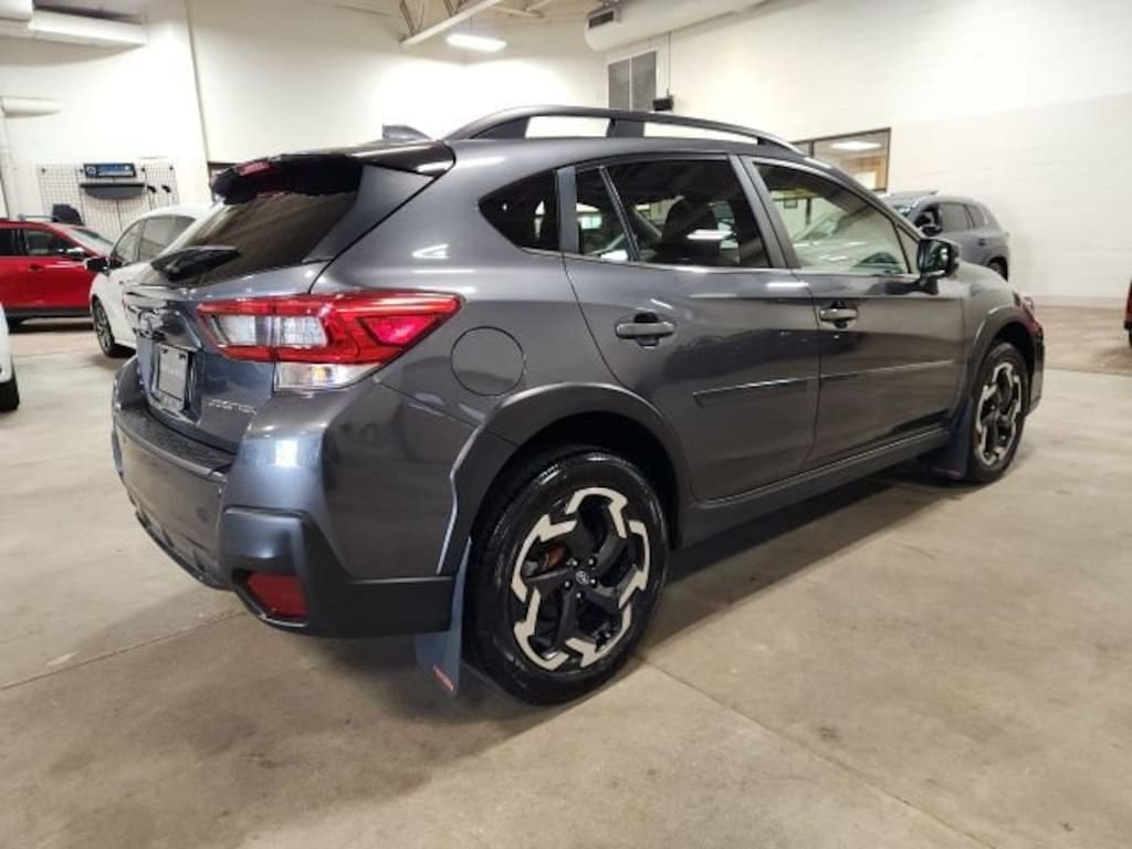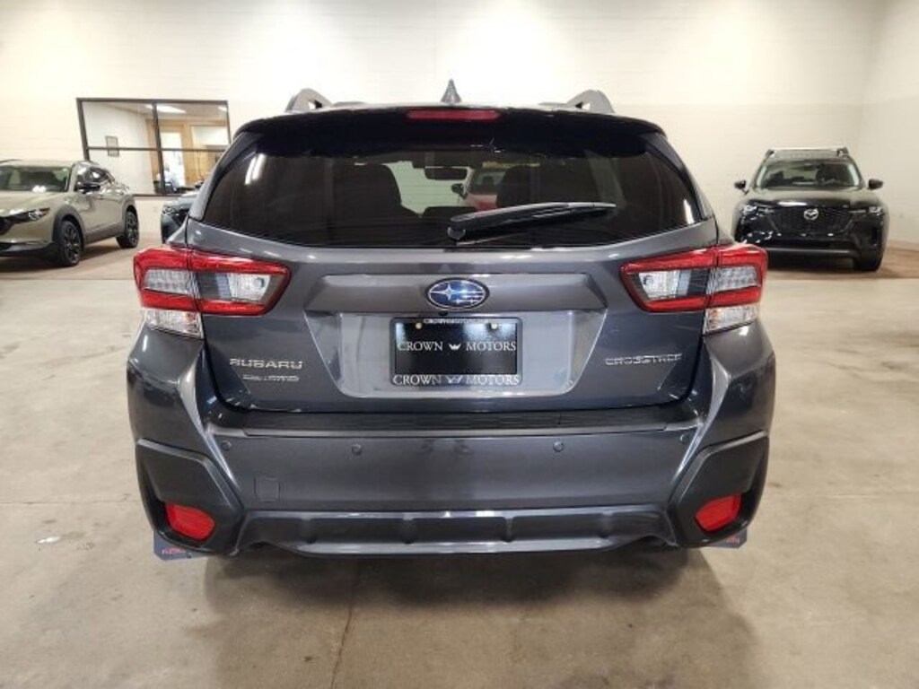 CARFAX One-Owner. Clean CARFAX. Gray 2022 Subaru Crosstrek Limited AWD Lineartronic CVT 2.5L 4-Cylinder DOHC 16V **ONE OWNER**, **ACCIDENT FREE**, AWD, 3.70 Axle Ratio, 4-Wheel Disc Brakes, 6 Speakers, ABS brakes, Air Conditioning, Alloy wheels, AM/FM radio: SiriusXM, Anti-whiplash front head restraints, Auto High-beam Headlights, Automatic temperature control, Brake assist, Bumpers: body-color, CD player, Driver door bin, Driver vanity mirror, Dual front impact airbags, Dual front side impact airbags, Electronic Stability Control, Emergency communication system: STARLINK Safety and Security (Subscription Required), Exterior Parking Camera Rear, Four wheel independent suspension, Front anti-roll bar, Front Bucket Seats, Front Center Armrest, Front fog lights, Front reading lights, Fully automatic headlights, Heated door mirrors, Heated Front Bucket Seats, Heated front seats, Illuminated entry, Knee airbag, Leather-Trimmed Upholstery, Low tire pressure warning, Moonroof Package 1, Occupant sensing airbag, Outside temperature display, Overhead airbag, Overhead console, Panic alarm, Passenger door bin, Passenger vanity mirror, Power door mirrors, Power driver seat, Power Moonroof, Power steering, Power windows, Radio data system, Radio: Subaru STARLINK 8.0" Multimedia Plus System, Rear anti-roll bar, Rear seat center armrest, Rear window defroster, Rear window wiper, Remote keyless entry, Security system, Speed control, Speed-sensing steering, Split folding rear seat, Spoiler, STARLINK/Apple CarPlay/Android Auto, Steering wheel mounted audio controls, Subaru STARLINK Smartphone Integration, Tachometer, Telescoping steering wheel, Tilt steering wheel, Traction control, Trip computer, Turn signal indicator mirrors, Variably intermittent wipers, Wheels: 18" x 7.0J Alloy Black w/Machine Finish, AWD.