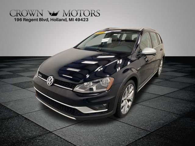 Clean CARFAX. Black 2017 Volkswagen Golf Alltrack TSI SEL 4Motion AWD 6-Speed DSG Automatic with Tiptronic 1.8L I4 Turbocharged DOHC 16V SULEV II 170hp ** LOW MILES**, **SUNROOF / MOONROOF**, **LEATHER**, **ACCIDENT FREE**, **LOCAL TRADE IN**, AWD, ABS brakes, Alloy wheels, Compass, Electronic Stability Control, Front dual zone A/C, Heated door mirrors, Heated front seats, Illuminated entry, Low tire pressure warning, Navigation System, Power driver seat, Power moonroof, Power steering, Power windows, Remote keyless entry, Steering wheel mounted audio controls, Traction control.