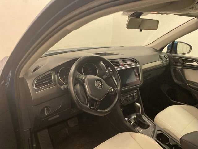 Clean CARFAX. Blue Metallic 2018 Volkswagen Tiguan 2.0T SE FWD 8-Speed Automatic with Tiptronic 2.0L TSI DOHC 3-Row Rubber Mats Kit, 3.33 Axle Ratio, 3rd row seats: bench, 4-Wheel Disc Brakes, 6 Speakers, ABS brakes, Air Conditioning, Alloy wheels, AM/FM radio: SiriusXM, Automatic temperature control, Brake assist, Bumpers: body-color, Compass, Delay-off headlights, Driver door bin, Driver vanity mirror, Dual front impact airbags, Dual front side impact airbags, Electronic Stability Control, Emergency communication system: VW Car-Net, Exterior Parking Camera Rear, First Aid Kit, Four wheel independent suspension, Front anti-roll bar, Front Bucket Seats, Front Center Armrest, Front dual zone A/C, Front reading lights, Fully automatic headlights, Heated door mirrors, Heated Front Bucket Seats, Heated front seats, Illuminated entry, Leather Shift Knob, Low tire pressure warning, Occupant sensing airbag, Outside temperature display, Overhead airbag, Overhead console, Panic alarm, Passenger door bin, Passenger vanity mirror, Perforated V-Tex Leatherette Seating Surfaces, Power door mirrors, Power driver seat, Power steering, Power windows, Radio data system, Radio: AM/FM/HD/CD w/Dual USB & Aux-In, Rear anti-roll bar, Rear reading lights, Rear seat center armrest, Rear window defroster, Rear window wiper, Remote CD player, Remote keyless entry, Roadside Assistance Kit, Roof rack: rails only, Speed control, Speed-sensing steering, Split folding rear seat, Spoiler, Steering wheel mounted audio controls, Tachometer, Telescoping steering wheel, Tilt steering wheel, Traction control, Trip computer, Turn signal indicator mirrors, Variably intermittent wipers, Wheels: 17" Tulsa.