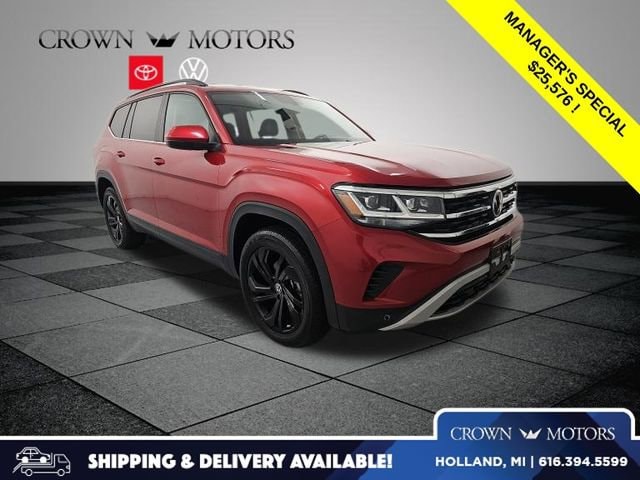 **LOW MILES**, **4MOTION All Wheel Drive System**, **LEATHER SEATS**, **HEATED SEATS**, **REAR VIEW CAMERA**, **3 ROWS of SEATING**, **Dual Zone Automatic Climate Control**, **Power Driver Seat**, **USB Smartphone Port**, **APPLE CAR PLAY/ANDROID AUTO CAPABLE**, 3.60 Axle Ratio, 3rd row seats: split-bench, 4-Wheel Disc Brakes, 6 Speakers, ABS brakes, Air Conditioning, Alloy wheels, AM/FM radio: SiriusXM with 360L, Auto-dimming Rear-View mirror, Automatic temperature control, Brake assist, Bumpers: body-color, Compass, Delay-off headlights, Driver door bin, Driver vanity mirror, Dual front impact airbags, Dual front side impact airbags, Electronic Stability Control, Emergency communication system, Exterior Parking Camera Rear, Four wheel independent suspension, Front anti-roll bar, Front Bucket Seats, Front Center Armrest, Front dual zone A/C, Front fog lights, Front reading lights, Fully automatic headlights, Heated Comfort Front Bucket Seats, Heated door mirrors, Heated front seats, Illuminated entry, Leather Shift Knob, Low tire pressure warning, Occupant sensing airbag, Outside temperature display, Overhead airbag, Overhead console, Panic alarm, Passenger door bin, Passenger vanity mirror, Perforated V-Tex Leatherette Seating Surfaces, Power door mirrors, Power driver seat, Power Liftgate, Power steering, Power windows, Radio data system, Radio: MIB3 Composition Media w/8" Touchscreen, Rain sensing wipers, Rear air conditioning, Rear anti-roll bar, Rear reading lights, Rear seat center armrest, Rear window defroster, Rear window wiper, Remote keyless entry, Roof rack: rails only, Security system, Speed control, Speed-sensing steering, Split folding rear seat, Spoiler, Standard Suspension, Steering wheel mounted audio controls, Tachometer, Telescoping steering wheel, Tilt steering wheel, Traction control, Trip computer, Turn signal indicator mirrors, Variably intermittent wipers, Wheels: 20" x 8J 5-Spoke Silver Painted Alloy.